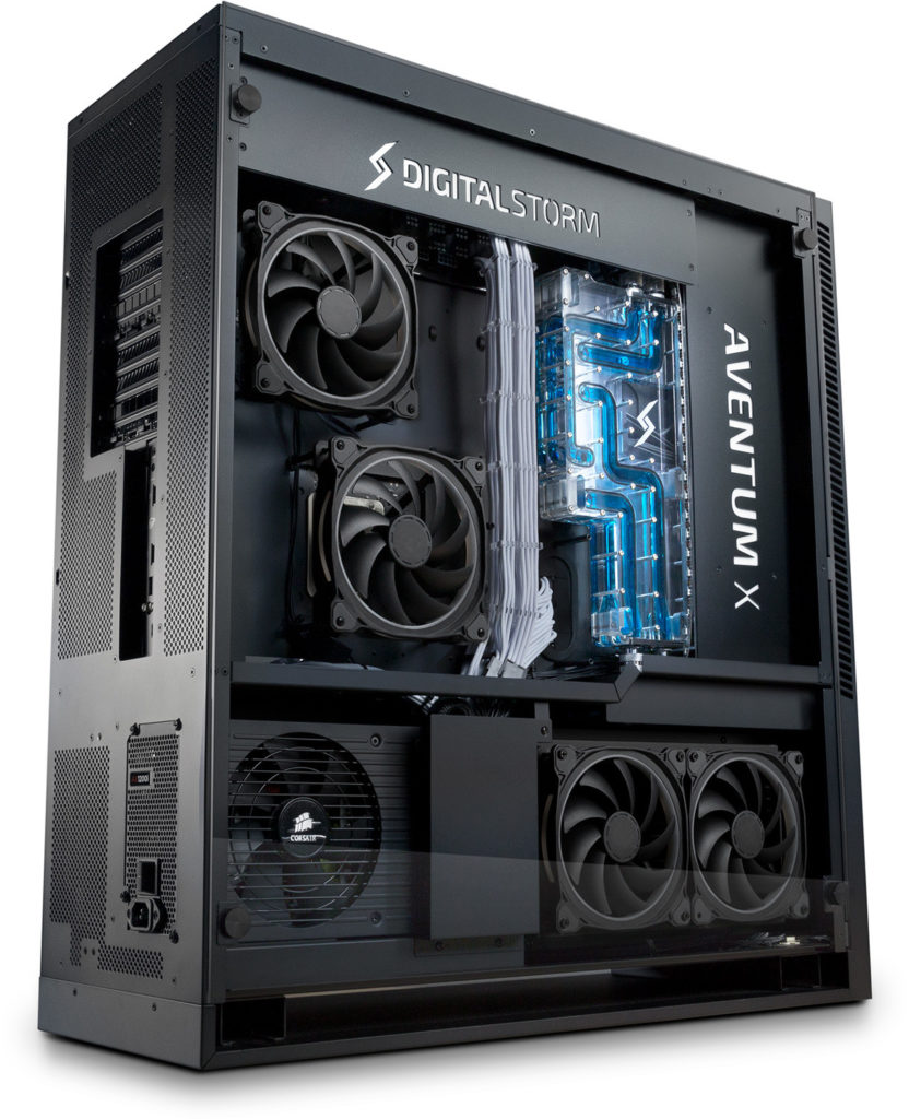Digital Storm ist stolz darauf, Aventum X, unseren bis heute fortschrittlichsten PC, mit einem modularen Flüssigkeitszufuhrsystem und einem vorgerouteten Power Panel auf den Markt zu bringen, um die üblichen Hürden von PCs der Enthusiasten-Klasse zu vereinfachen.