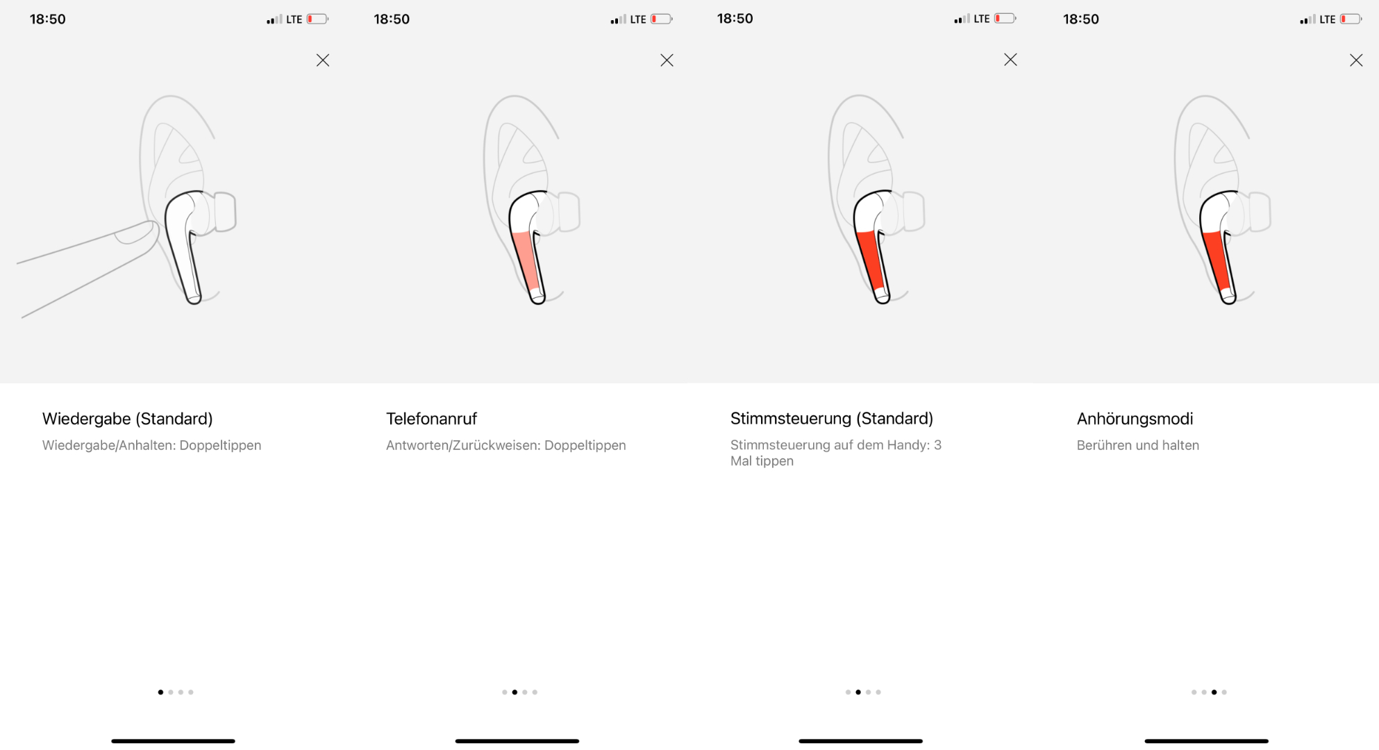 Dem Nutzer wird eine animierte Übersicht über die richtige Bedienung der Hörer geboten. Diese Art der Nutzung kennen wir bereits von anderen 1More In-Ears, auch den hier getesteten 1More ComfoBuds Mini.