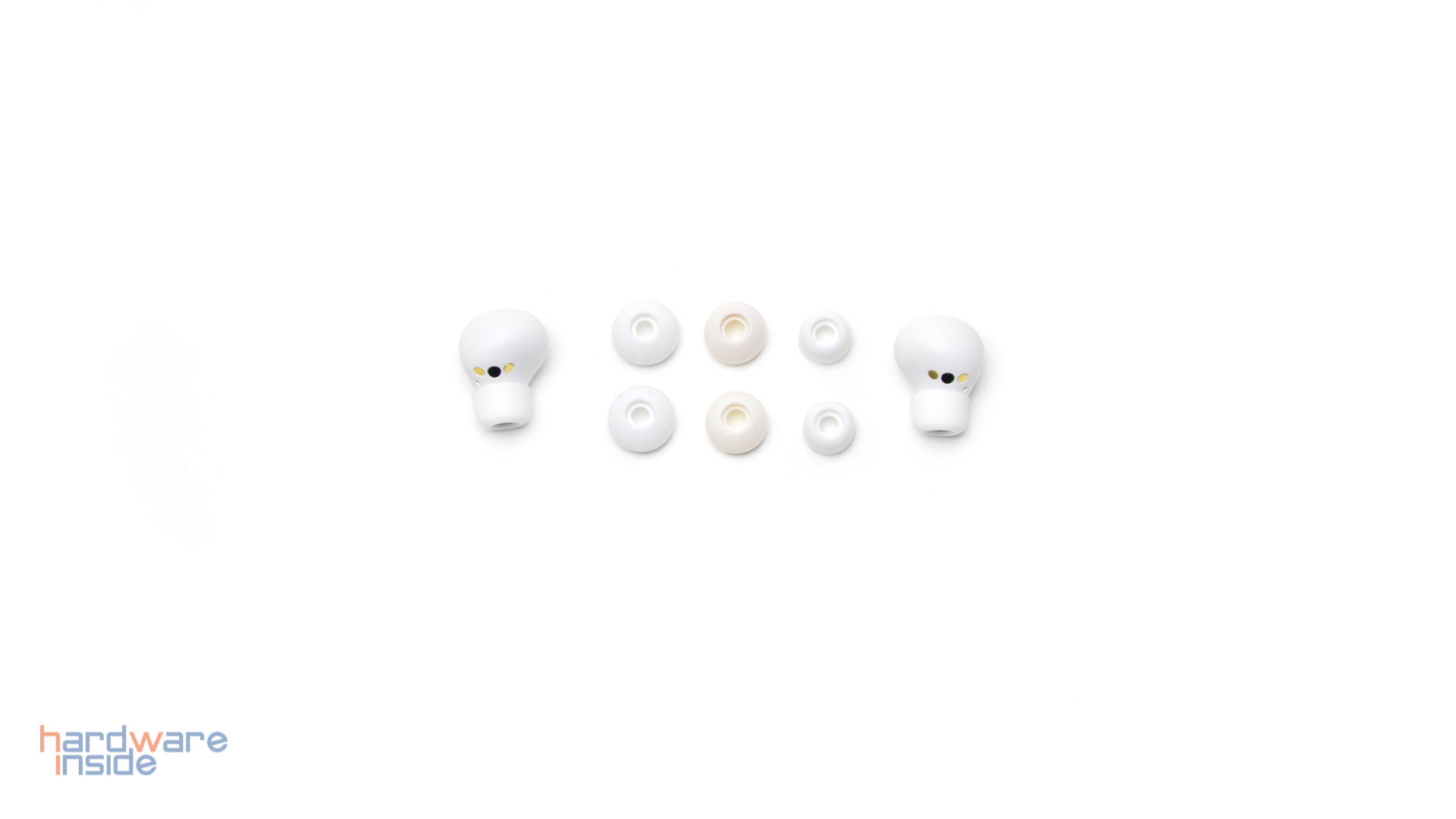 Im Lieferumfang befinden sich neben den vormontierten Ohrstücken drei weitere Paare mit unterschiedlichen Größen. Die Ohrstücke sind aus Silikon und lassen sich relativ simpel auf die ComfoBuds Mini stülpen. Kommt die richtige Größe zum Einsatz, liegen die Kopfhörer gut im Ohrkanal. Die auf den ComfoBuds Mini angebrachten Ohrstöpsel sind die mittig platzierten leicht gelblichen. Woher der farbliche Unterschied kommt, können wir nicht sagen.