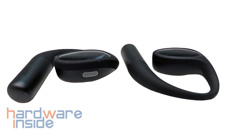 Nachdem wir uns den Lieferumfang angesehen haben, werfen wir einen genaueren Blick auf die schwarzen S51 Open Earbuds. Optisch präsentieren sie sich schlicht und modern. Lediglich die spiegelnde Fläche auf den Treibern setzt einen dezenten Akzent, auf der das 1MORE-Logo zu sehen ist. Auch bei der Verarbeitung gibt es nichts zu bemängeln. Alles wirkt wie aus einem Guss, und das verwendete Material fühlt sich wertig an. Mit jeweils 9,5 g sind die S51 angenehm leicht.