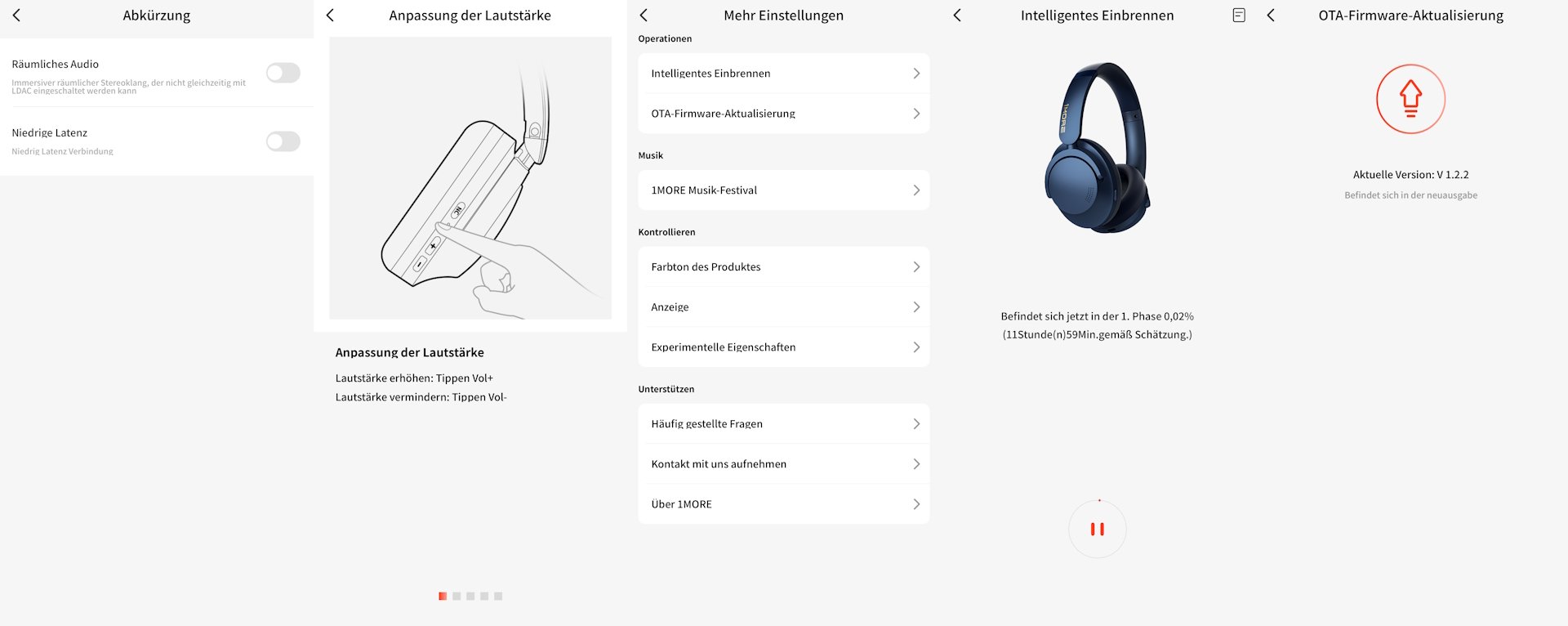 Die Inbetriebnahme ist sehr einfach, der Kopfhörer muss lediglich durch ein längeres Drücken der entsprechenden Taste eingeschaltet werden. Der Kopfhörer signalisiert mit einer Tonfolge, dass dieser nun eingeschaltet und koppelbereit ist. Anschließend kann der Kopfhörer einfach über das Bluetooth-Menü unseres Smartphones verbunden werden. 1MORE bietet für seine Kopfhörer auch eine App für Android und iOS an, was aber nicht zwingend notwendig ist. Allerdings enthält die App ein paar nützliche Einstellungsmöglichkeiten.