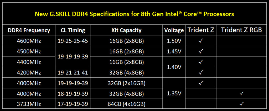 G.SKILL International Enterprise Co., Ltd., einer der weltweit führenden Hersteller von Hochleistungsarbeitsspeicher- und Gaming-Peripheriegeräten, stellt die neuen Trident Z- und Trident Z RGB-Spezifikationen für die neueste Intel-Prozessorplattform vor.