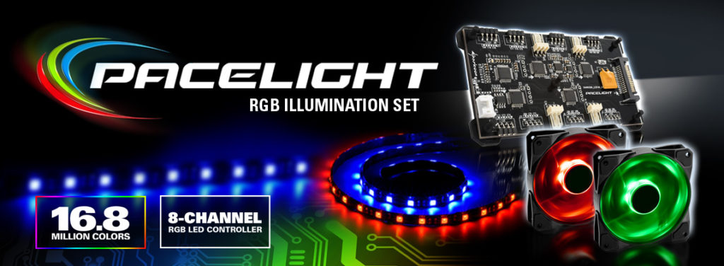 Die speziell für das P1 entwickelten Pacelight F1 RGB-Lüfter versprechen einen Volumenstrom von 93,22 m3/h bei 23 dB(A) und 1.400 U/min. Sechs LEDs im Zentrum sollen auch bei vollem Betrieb eine gleichmäßige Ausleuchtung liefern. Die Pacelight S1 RGB-LED-Strips besitzen 18 vor Spritzwasser geschützte 5050-RGB-LEDs auf einer Länge von 360 mm. Dank der Flexibilität des Materials und der geringen Breite von 10 mm können die Strips auch in schmalen Zwischenräumen magnetisch oder per Klebefläche halt finden.