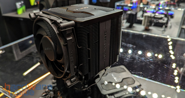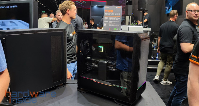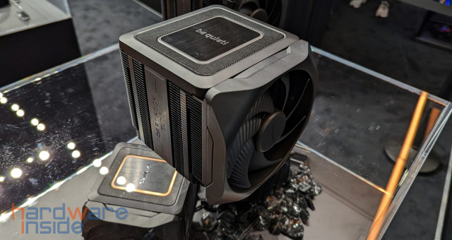 Am Stand von be quiet! gab es einige neue Gehäuse wie das Silent Base 802 und die neue Shadow Base 800 Serie, welche es als FX-Variante mit ARGB-Beleuchtung an der Front und mit insgesamt vier Light Wings. Die DX-Variante dagegen die gleiche ARGB-Beleuchtung in der Front, kommt aber mit drei 140 mm Pure Wings Lüftern- beide Gehäuse gibt es wahlweise in Schwarz oder Weiß. Die Standard-Variante dagegen kommt nur in Schwarz, ohne Beleuchtung und mit drei 140 mm Pure Wings Lüftern. Allen drei Varianten gemeinsam ist der Airflow und der viele Platz für Hardware im Inneren. Auch die CPU-Kühler der neuen DARK ROCK V haben wir hier gefunden, dabei gibt es verschiedene Versionen, jetzt mit einem Schalter um zwischen Leise und Leistung zu wählen. Die Version namens DARK ROCK V ELITE verfügt sogar noch über eine ARGB-Beleuchtung.
