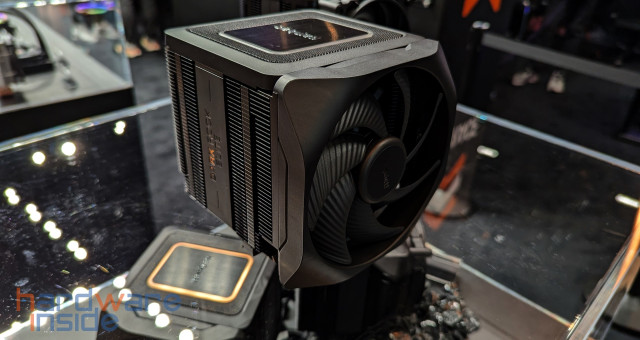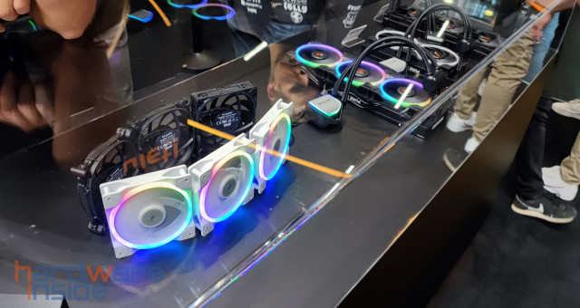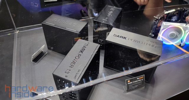 Am Stand von be quiet! gab es einige neue Gehäuse wie das Silent Base 802 und die neue Shadow Base 800 Serie, welche es als FX-Variante mit ARGB-Beleuchtung an der Front und mit insgesamt vier Light Wings gab. Die DX-Variante dagegen, die die gleiche ARGB-Beleuchtung in der Front besitzt, kommt aber mit drei 140 mm Pure Wings Lüftern. Beide Gehäuse gibt es wahlweise in Schwarz oder Weiß. Die Standard-Variante dagegen kommt nur in Schwarz, ohne Beleuchtung und mit drei 140 mm Pure Wings Lüftern. Allen drei Varianten gemeinsam ist der Airflow und der enorme Platz für Hardware im Inneren. Auch die CPU-Kühler der neuen DARK ROCK V haben wir hier gefunden. Dabei gibt es verschiedene Versionen, jetzt mit einem Schalter um zwischen leise und Leistung zu wählen. Die Version namens DARK ROCK V ELITE verfügt sogar noch über eine ARGB-Beleuchtung.