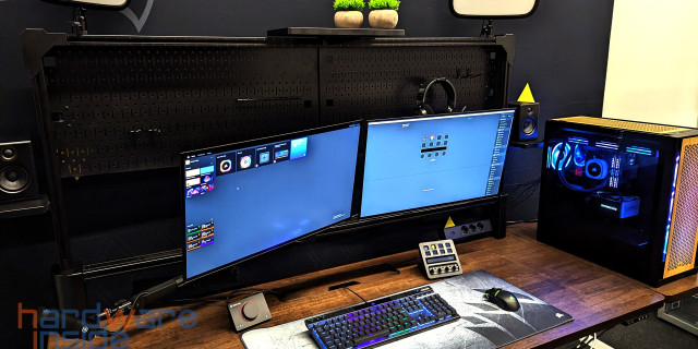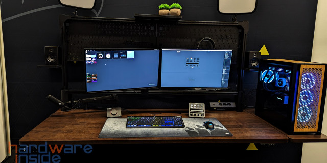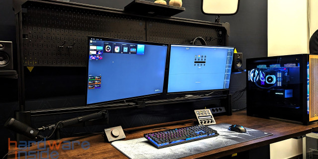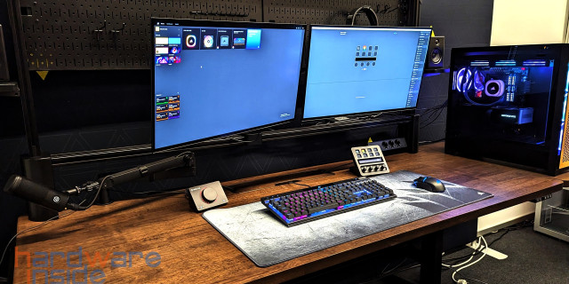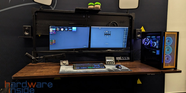 Corsair überraschte uns in diesem Jahr mit einem Tisch, den es in drei verschiedenen Ausführungen geben wird. Das Basismodell bietet viel Platz für den Computer und die entsprechende Peripherie und Monitore. Die nächste Variante lässt sich dann auch noch elektrisch in der Höhe verstellen und die größte Variante, die sich vornehmlich an Streamer richtet, verfügt über einen kompletten Aufbau mit Aluprofilen, wie man sie vom Messebau kennt. Das in Verbindung mit Haltern für Monitore, Keylights und den Lochblechen, um allerlei Zeugs zu verstauen, hat uns ein wenig die Sprache verschlagen. Über den genauen Preis können wir nur spekulieren, aber wir sind gespannt.