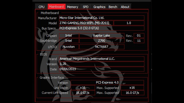| Mainboard | MSI Z790 GAMING PRO WIFI |