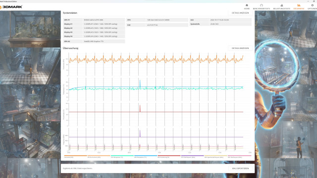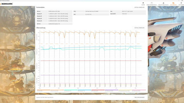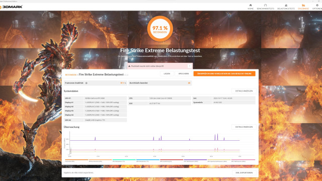 Der Fire Strike Extreme Belastungstest liefert uns eine Framerate Stabilität von 97,1 % bei 20 Durchläufen. Die Details zur Überwachung können den Diagrammen im Endergebnis nachvollzogen werden.