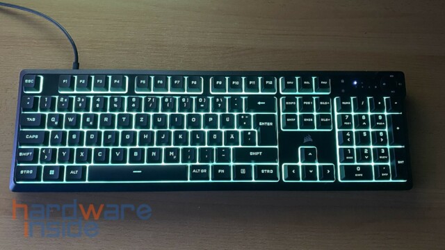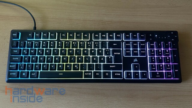 Direkt out of the Box macht die komplett in schwarz gehaltene K55 CORE einen guten Eindruck, die Verarbeitung ist ordentlich und ohne Mängel. So wie wir es von CORSAIR gewohnt sind.