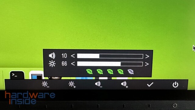 Laut Hersteller liegt die maximal mögliche Leistungsaufnahme bei 186 Watt. Darin ist schon die Leistungsabgabe über die USB-Anschlüsse mit eingerechnet. Ohne ein angeschlossenes Gerät messen wir 28,9 Watt. Betreiben wir unser zu 50 % geladenes MacBook Pro, so steigt der Verbrauch in der Spitze auf 109,3 Watt. Praktischerweise verfügt der Monitor über einen Netzschalter, zwar verbraucht der Monitor im Standby nur um die 0,4 Watt, doch empfehlen wir bei längerer Nutzung (> 60 Min.) den Netzschalter zu nutzen, dann liegt der Verbrauch bei 0.
