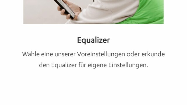 In der App haben wir auch die Möglichkeit über eine simple Oberfläche den Equalizer einzustellen. Auf der oberen Oberfläche können wir in alle Richtungen wischen und damit unseren Geschmack treffen. Es ist zwar eine interessante Idee, den Equalizer auf diese Weise zu gestalten, Enthusiasten werden jedoch Frequenzbänder und Pegelregler vermissen. Sollte eine Voreinstellung gewollt sein, muss diese nicht unbedingt auf der Oberfläche gesucht werden, sondern kann im unteren Bereich aus einer Dropdown-Liste herausgesucht werden. Zusätzlich befindet sich ein kleines Plus im oberen Bereich, mit dessen Hilfe wir eine eigene Equalizer-Voreinstellung vornehmen können.