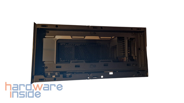 Unterhalb des Gehäuses befindet sich ein herausnehmbarer Lüfter-Halter, der durch Entfernen der Rändelschraube seitlich einfach entnommen werden kann. Maximal drei 120 mm Lüfter können hier verbaut werden, was für einen besseren Airflow sorgt.