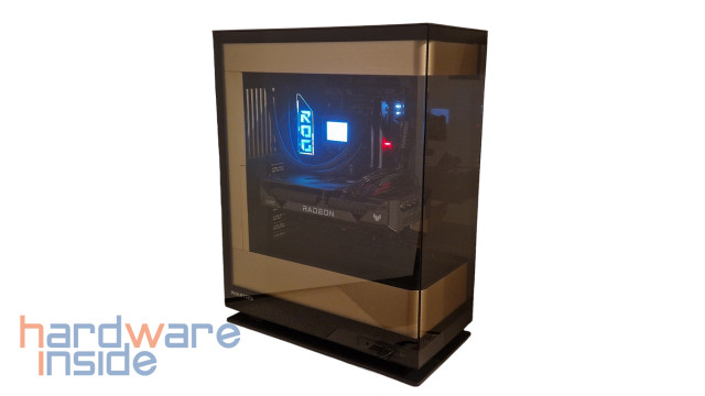 Der erste Eindruck ist bekanntlich der beste und so präsentiert sich auch das EVOLV X2. Durch die drei Fenster aus gehärtetem Glas, wird es so dem Anwender ermöglicht einen ungestörten Blick auf den Innenraum samt verbauter Hardware zu werfen. Durch die Gestaltung zweier integrierter Lüfter oder Radiatoren-Plätze, sowohl oberhalb als auch unterhalb, die in Gold gehalten und aus gebürstetem Aluminium sind, wird das Ganze abgerundet.