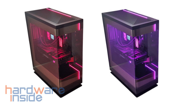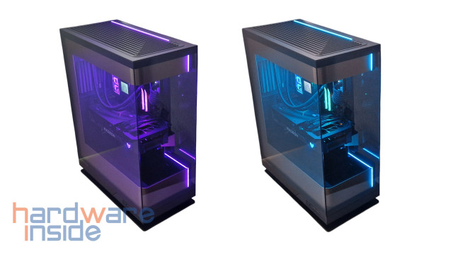 Die Verarbeitung des Gehäuses und die genutzten Komponenten sind gut durchdacht und ausgewählt, es wirkt sehr edel. Mit seinen verbauten Glatten und diffusen D-RGB Leisten, die sich seitlich im oberen und unteren Bereich befinden, wird das Gehäuse später noch besser in Szene gesetzt werden. Eine weitere diffuse D-RGB Leiste befindet sich oberhalb des Gehäuses (dazu kommen wir aber noch).