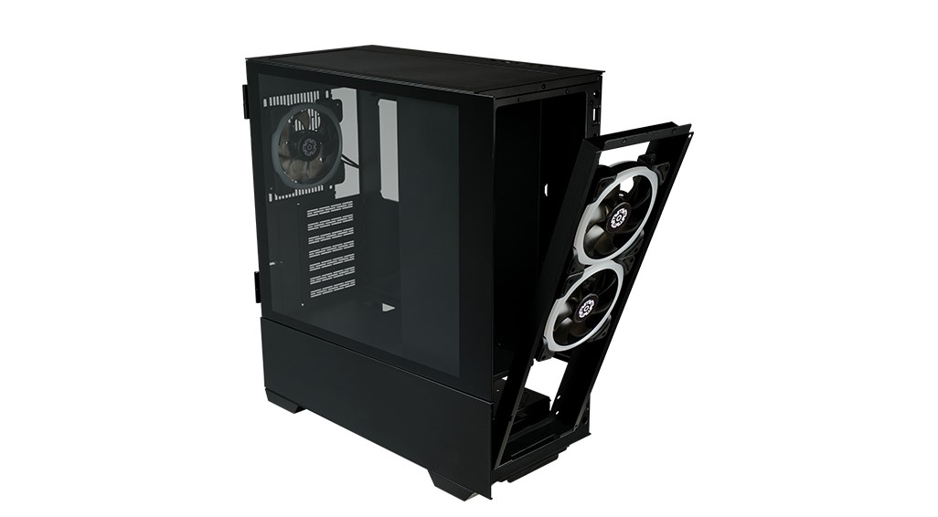 Über clevere Designelemente werden bequemere Systemmontage gesorgt; z.B. die integrierte Lüfter-Halterung hinter der Frontblende bietet den Nutzer eine mühelose Installation einer Wasserkühlung bis zu 360mm Radiator.