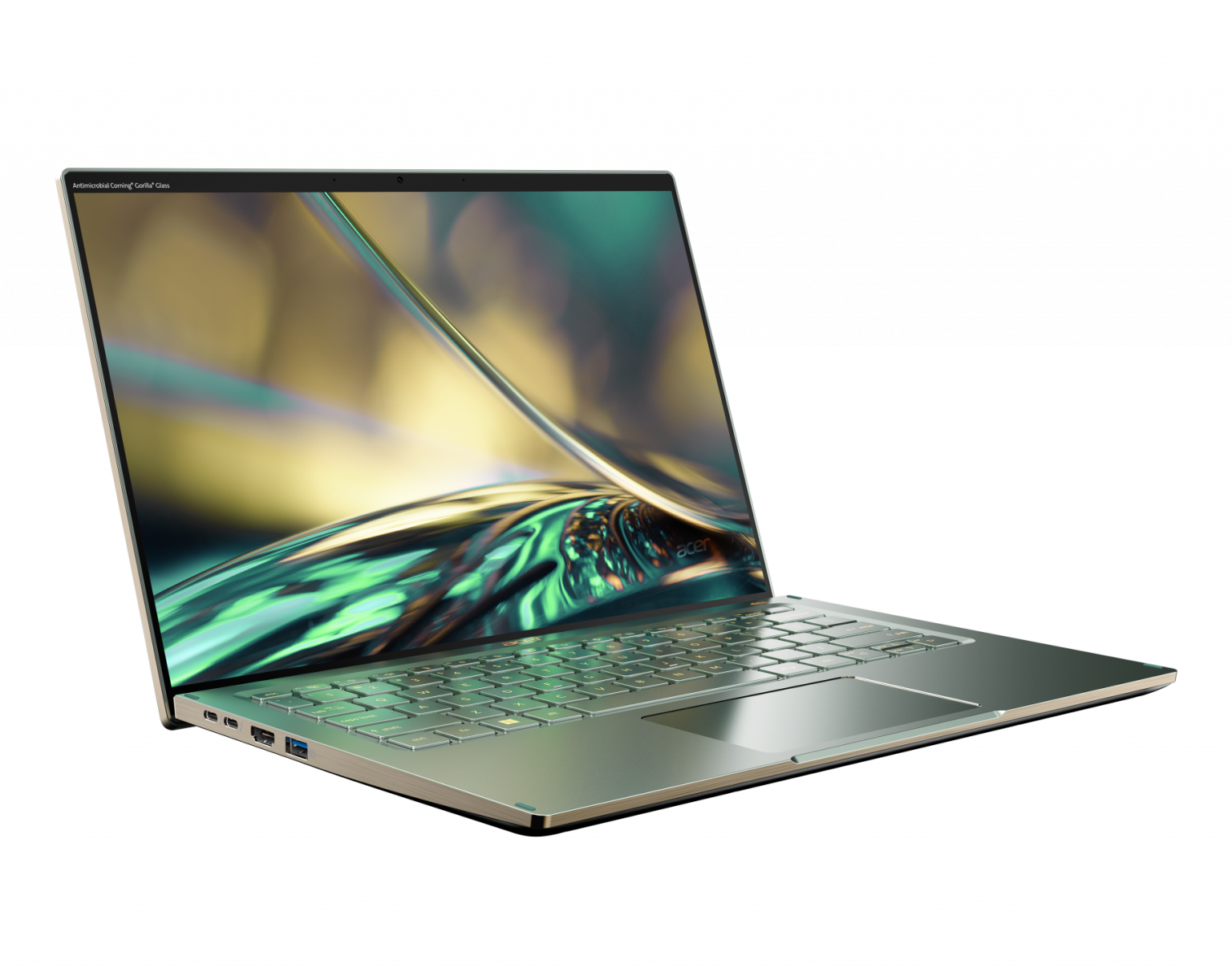 Das Acer Swift 5 verfügt über ein herausragendes WQXGA (2560×1600)1-Touchscreen-Display und eine Reihe von benutzerfreundlichen Funktionen, die es zu etwas Besonderem machen. Dem Nutzer fallen sofort die dünnen Ränder an allen vier Seiten des Bildschirms auf, die eine Screen-to-Body-Ratio von 92,22 Prozent ermöglichen. Das Display, mit einem Seitenverhältnis von 16:10, bietet mehr vertikalen Platz als das herkömmliche 16:9-Format, was bedeutet, dass der Benutzer mehr von einem Dokument oder einer Tabelle erfassen kann, bevor er scrollen muss. Das Display besteht aus einer Schicht aus antimikrobiellem Corning® Gorilla® Glass, das sowohl widerstandsfähig als auch mit ionischem Silber zum Schutz der Oberfläche beschichtet ist.4