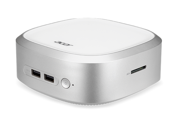 Der kompakte Acer Revo Base überzeugt durch seine enorme Leistung. Im dezenten 1-Liter Gehäuse mit einer Höhe von gerade einmal 5,3 cm und einer Standfläche von 14 x 14 cm bewältigen Intel® Prozessoren bis zum Core™ i5 sowie bis zu 8 GB DDR3L-Systemspeicher rechenintensive Aufgaben wie z. B. die Dekodierungen von hochauflösenden Multimedia-Inhalten mit Leichtigkeit. Der Windows 10 betriebene Revo Base verfügt zudem über eine integrierte Intel® HD-Grafikfunktion und High-Definition-Sound.