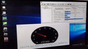 Wie wir sehen können, hat es der8auer auf seinem X399 Asus Mainboard geschafft, auf eine Übertragungsgeschwindigkeit von 28375,84 MB/s zu kommen. Mit Hilfe von zwei ASUS Hyper M.2 x16 Karten und seinen Acht Samsung 960 Pro/EVO SSDs. Gemessen wurde die Geschwindigkeit mit IOmeter. Wir sind sehr begeistert von den Ergebnissen und finden diese spektakulär.