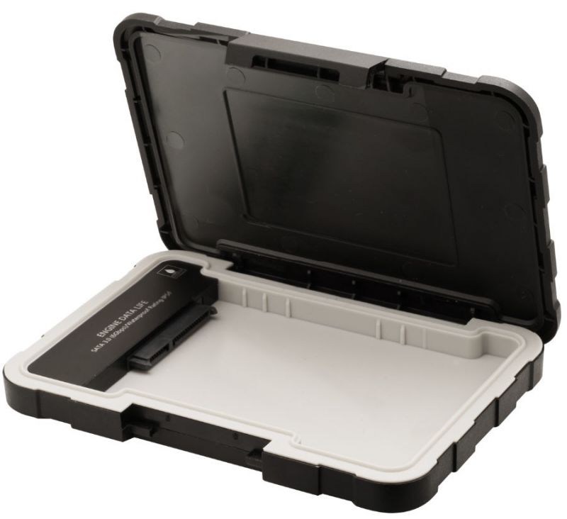 Die Installation ist denkbar einfach. Nach dem Öffnen des Gehäuses wird das 2,5-Zoll-Laufwerk einfach hineingeschoben. Es unterstützt sowohl 7-mm- als auch 9-mm-Laufwerke mit SATA-Schnittstelle. Eine SSD kann im Inneren stoßgeschützt bis zu 100 cm hohe Stürze überstehen.