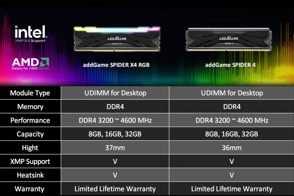 Taipeh, Taiwan, 6. August 2021 – Aufbauend auf dem Erfolg der AddGame-Serie, ist addlink stolz darauf, die neuesten Hochleistungs-Overclocking-Speicher SPIDER 4 und SPIDER X4 DDR4 anzukündigen.