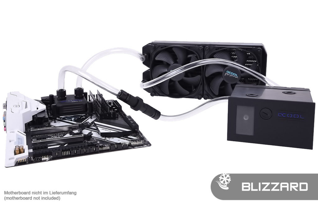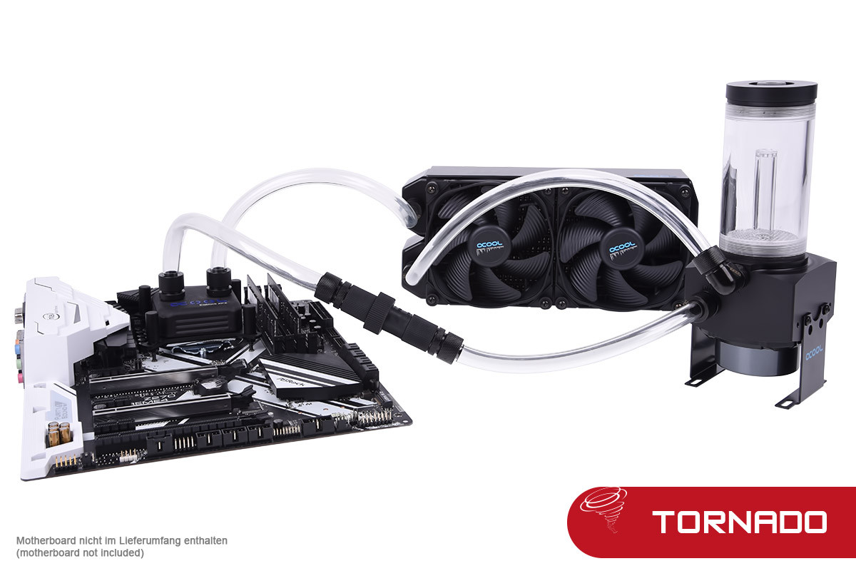 Mit den neuen Eissturmsets erhältst Du alle Komponenten, die Du für den Start in die Welt der Wasserkühlung benötigst. Die Sets richten sich dabei nicht nur an Einsteiger, sondern auch an Profis. Alle verwendeten Komponenten sind optimal aufeinander abgestimmt und stammen aus der High-End-Serie von Alphacool. Bei den Materialien geht Alphacool keine Kompromisse ein und setzt bei allen Metallen auf reines Kupfer oder Messing. Damit ist eine überragende Kühlleistung garantiert. Mit dem Set lässt sich spielend Deine CPU kühlen. Außerdem kannst Du noch einen beliebigen Grafikkartenkühler in den Kreislauf mit einbinden. Dazu brauchst Du, Dank eines beiliegenden Schnellverschlusses, den Kreislauf nicht entleeren oder umbauen.