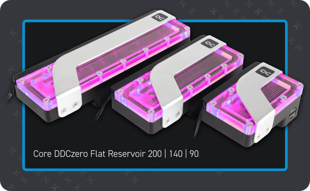 Ein Highlight der neuen Produktserie ist das Core DDCzero Flat Reservoir, das in drei verschiedenen Größen erhältlich sein wird. Die Reservoirs sehen nicht nur mit ihrer aRGB-Beleuchtung beeindruckend aus, sondern bieten auch Flexibilität. Sie zeichnen sich durch die einzigartige Core Designsprache und die neue und leistungsstarke Core DDCzero PWM Pumpe aus. Der kleine Formfaktor ermöglicht sogar den Einbau in kompakte Gehäuse.