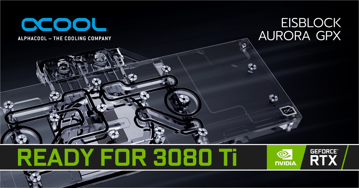 Alphacool’s Eisblock Aurora GPX Grafikkartenkühler ist ab sofort für zahlreiche RTX 3080 Ti Grafikkarten-Modelle der Hersteller Asus, EVGA, MSI, Zotac, Palit, Inno3D und Nvidia verfügbar.