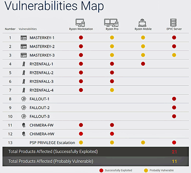 Anfang dieses Monats hat ein israelisches Sicherheitsunternehmen namens CTS Labs eine Reihe von Schwachstellen aufgedeckt, die die Zen-basierte AMD-Prozessorfamilie betreffen. Die Exploits – Masterkey, Ryzenfall, Fallout und Chimera – betreffen den Secure Processor, der an Bord der Ryzen- und EPYC-Produkte gefunden wurde, sowie den unterstützenden Ryzen-Chipsatz.