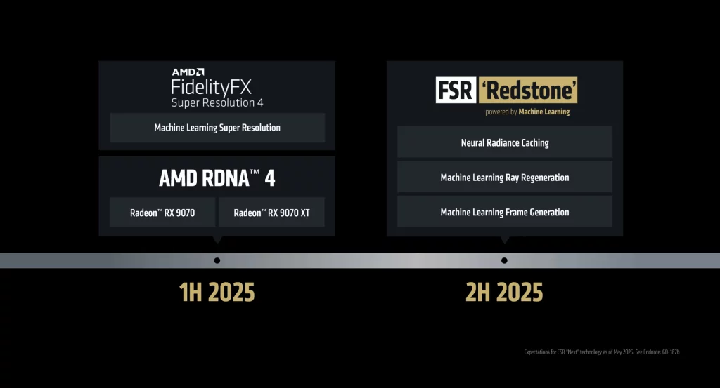 Die neuen Funktionen setzen eine Grafikkarte mit ausreichender Rechenleistung für maschinelles Lernen voraus. Daher ist Redstone ausschließlich mit der RX-9000-Serie auf RDNA-4-Basis kompatibel – ältere GPUs verfügen schlicht nicht über die benötigte Tensor-Rechenleistung für die Echtzeit-KI-Inferenz.