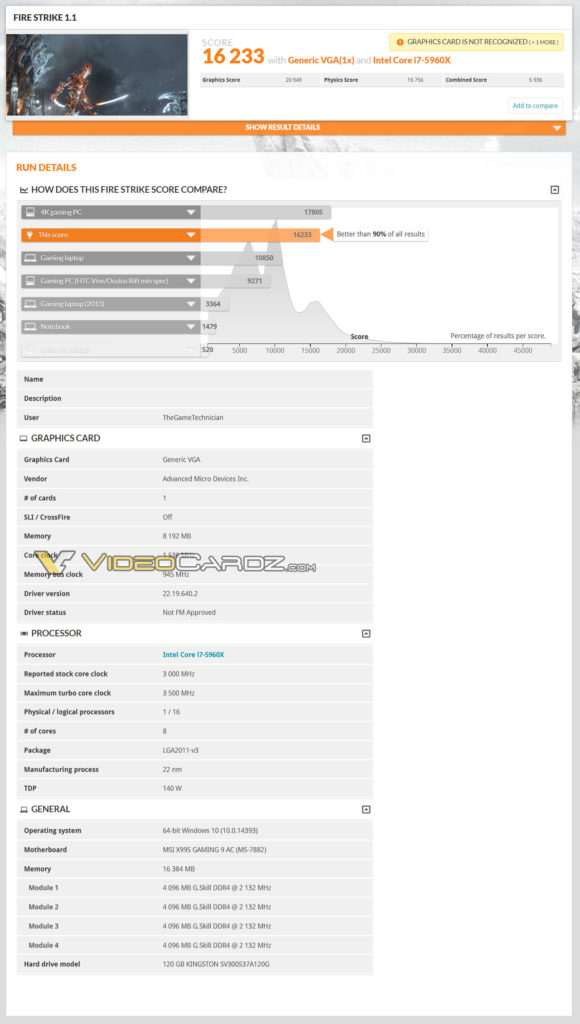 In drei Testläufen lieferte die RX Vega Grafikergebnisse von 22.330 Punkten, 22.291 Punkten und 20.949 Punkten. Damit ist die Leistung entweder auf, oder knapp unter dem Niveau der GeForce GTX 1080, aber jedenfalls über der Leistung der GTX 1070.