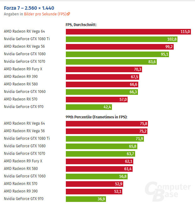 Auch die AMD RX 580 konnte für etwas aufsehen sorgen. Die minimalen Framerates der RX 580 waren auch in diesem Test etwas höher als die der allmächtigen GTX 1080 Ti. AMDs Vorsprung verringert sich nur bei 2560 x 1440 und noch weiter bei 4K. Die AMD RX Vega 56 sehen wir gleich auf mit der Nvidia GTX 1080. Computerbase.de kontaktierte NVIDIA, diese bestätigten, dass es sich um die korrekte Leistung der Grünen handelte. Es Bestände kein Verdacht auf einen Bug im Treiber oder einer unoptimierten Konfiguration. Es sind jedoch andere Werte als die in Techpowerups getesteten Benchmarks aus folgendem Review.