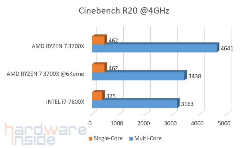 Als nächstes haben wir uns die Mühe gemacht und den INTEL i7-7800X und AMD RYZEN 7 3700X auf 4 GHz getaktet. Des Weiteren haben wir beim 3700X zwei Kerne deaktiviert um beide direkt miteinander vergleichen zu können und um zu sehen was zwei zusätzliche CPU-Kerne für einen Vorteil bringen.