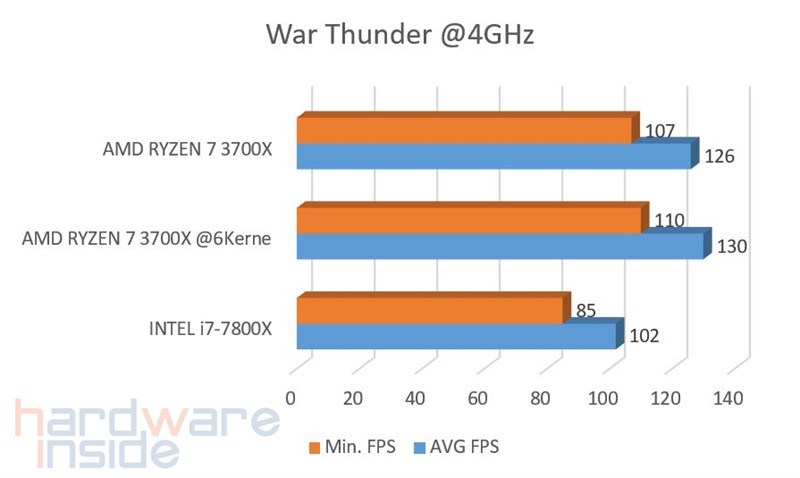 Wie auch zuvor in den Ergebnissen zu WarThunder zu erkennen war, schneidet die Engine der Zen2-Architektur in War Thunder sehr gut ab. So liegt die IPC-Leistung von Zen2 27 bis 30 Prozent über der Skylake-X Architektur.