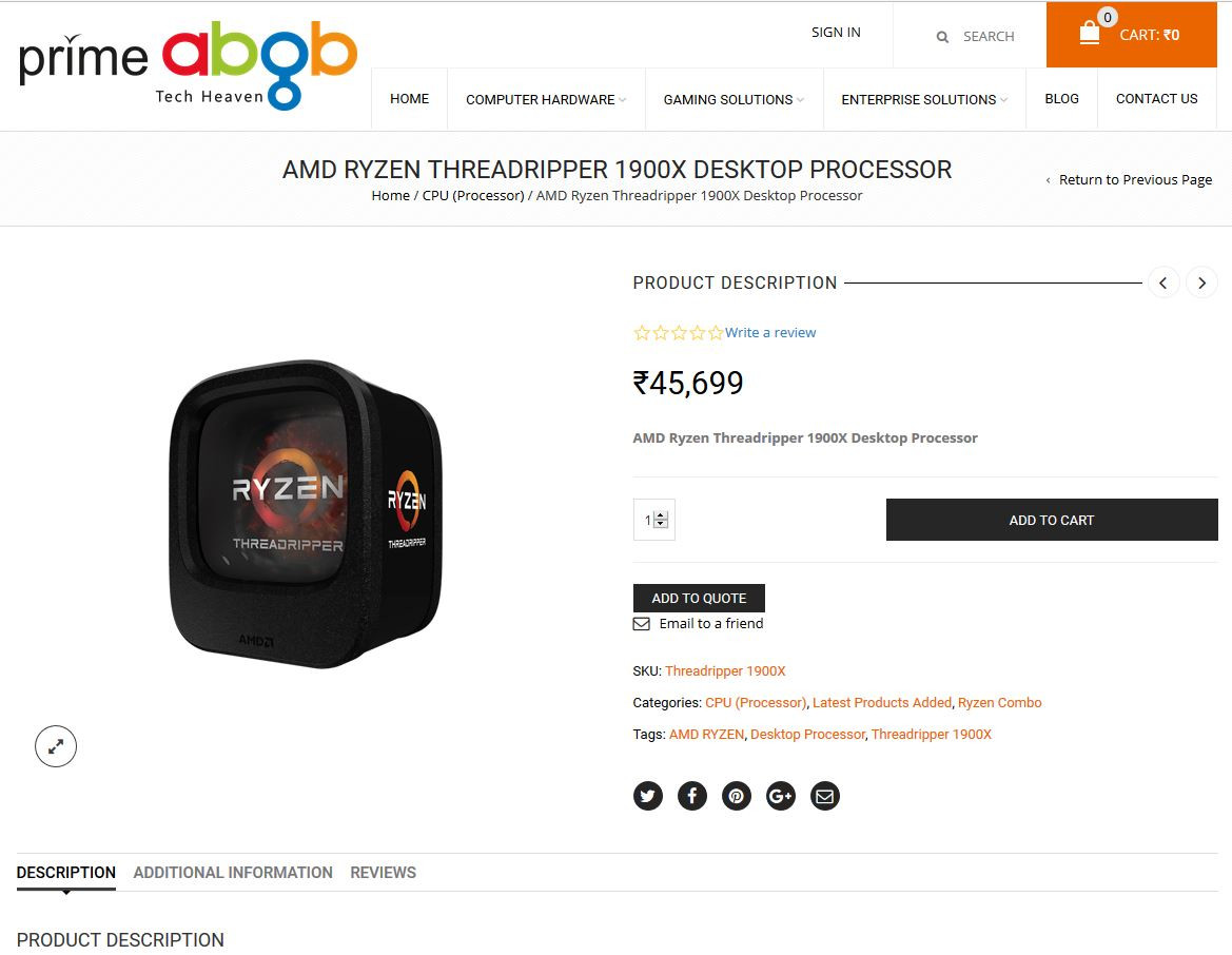 Mit einem Verkaufspreis von 54.699 INR (599€) wird der Threadripper 1900X in Indien an den Verkaufsstart gebracht. Dies ist die dritte CPU aus der HEDT-Threadripper-Serie von AMD. Ab dem 31.08.2017 wird die CPU offiziell verfügbar sein. Der Preis, hier zu sehen mit 45.699 indische Rupien, wurde von uns in Euro umgerechnet. Hinzu kommen noch Steuern und Transport. Rechnen wir den Preis in US-Dollar um, kommen wir auf ca. 715$. AMD nannte aber einen UVP von 549$, der hier um einiges übertroffen wurde. Der Threadripper 1920X und der 1950X sind in Indien mit 65.488 INR (1.024$) und 82.008 INR (1.283$) beziffert. Wie der Preis in Europa letztendlich gestaltet wird, wissen wir noch nicht.