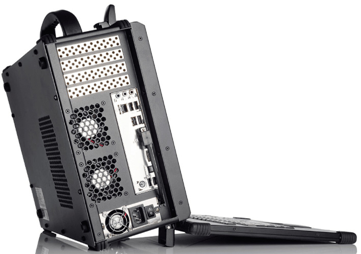 Wenn Sie wie ein Boss auf einer LAN-Party auftauchen wollen, reicht es nicht aus, mit um den Hals geschlungenen Kopfhörern, einer über der Schulter baumelnden Gaming-Maus und einer unausstehlich lauten mechanischen Tastatur unter dem Arm aufzutauchen, während Sie in jeder Hand einen Monster-Energy-Drink halten. Sie werden nicht aus der Menge hervorstechen. Um einen unvergesslichen Auftritt zu haben, stellen Sie sich vor, Sie schlendern mit einer klobigen Aktentasche in den Raum, die eigentlich gar keine Aktentasche ist, sondern ein vollwertiger PC mit einem Threadripper-Prozessor darin. Ja, so wird es gemacht.