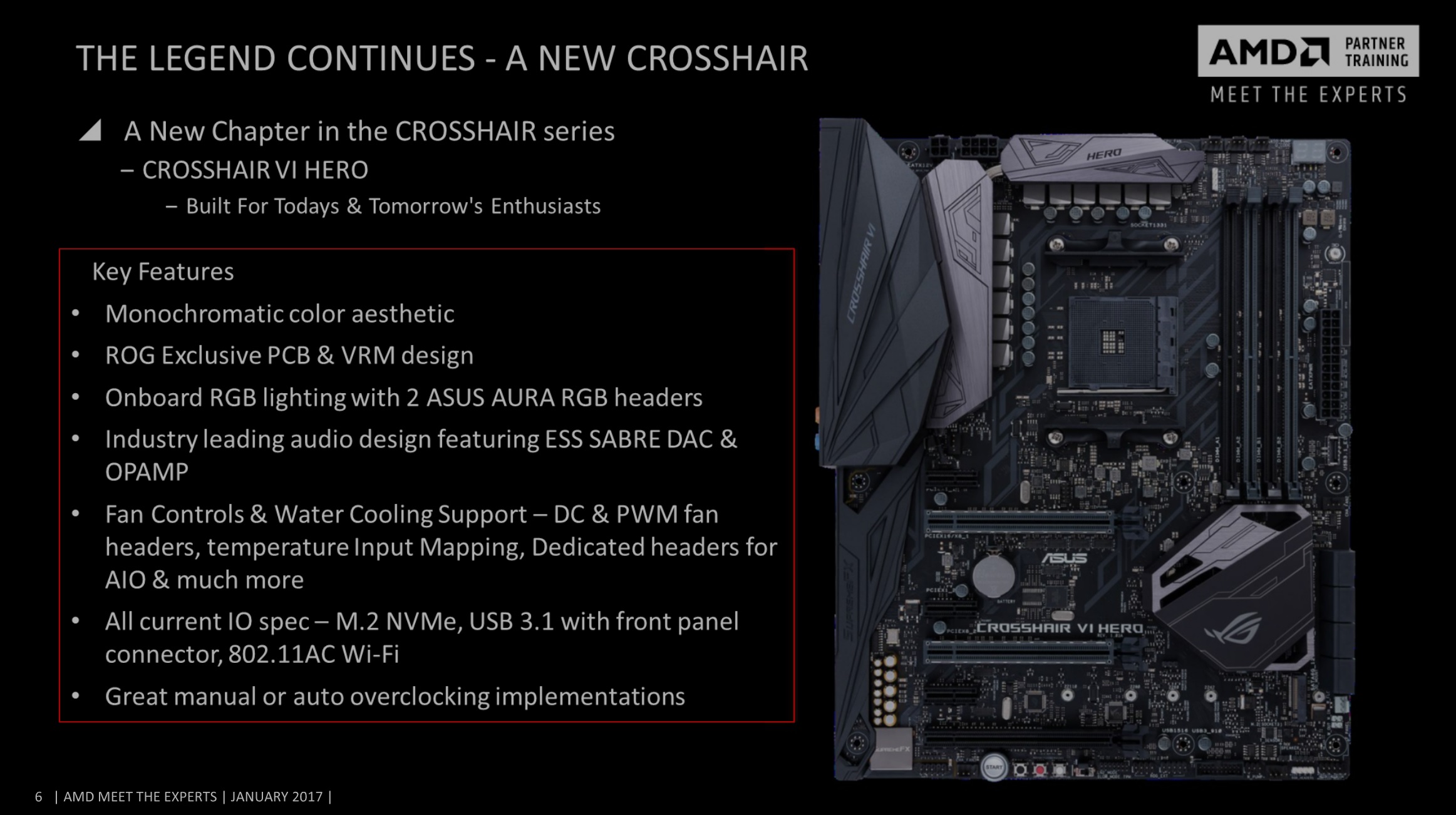 Von Asus kommt als High-End Board das ASUS AM4 X370 Crosshair VI Hero aus der beliebten und bekannten Crosshair Reihe: