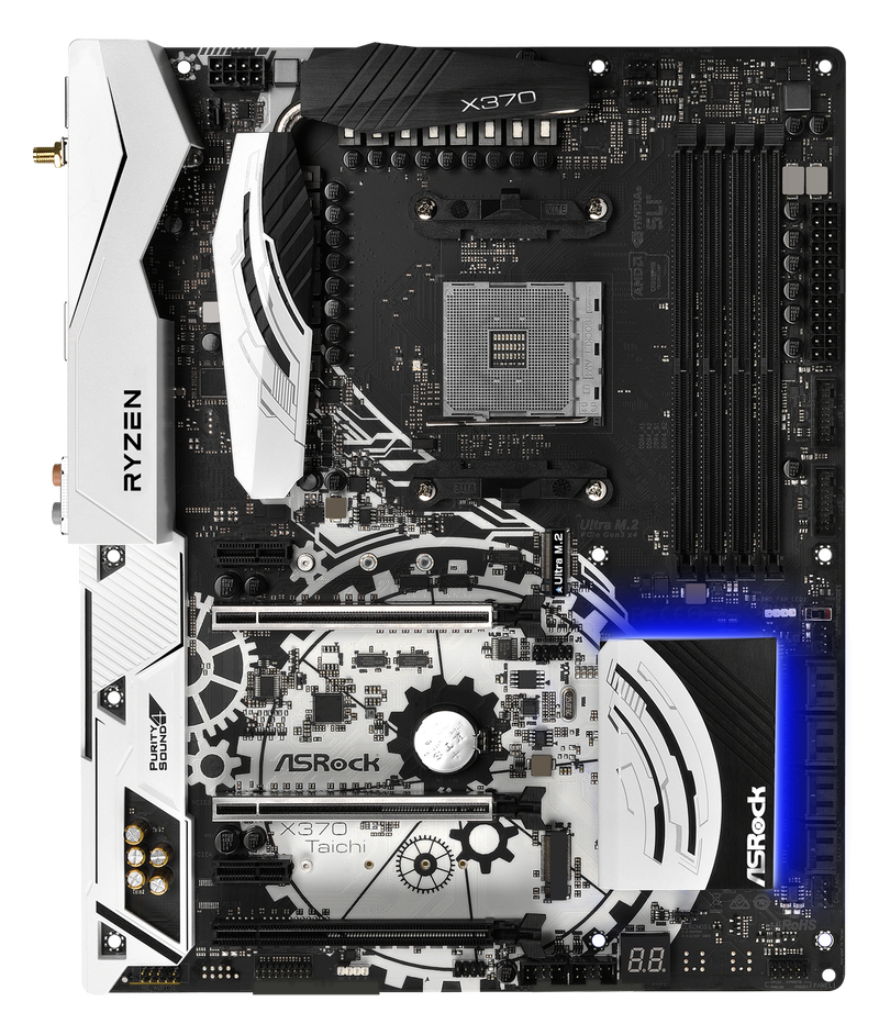 Das Spitzenmodell von ASrock hört auf den klangvollen Namen ASrock X370 Taichi, und ist ebenso wie die anderen High-End Modelle ein echtes optisches Schmankerl.