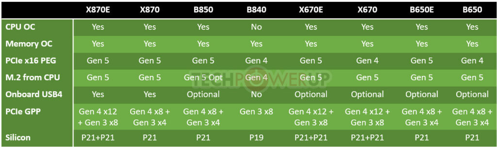 Quelle: AMD Shuffles Feature-sets of its 800-series Chipset, X870 is B650E Successor | TechPowerUp
