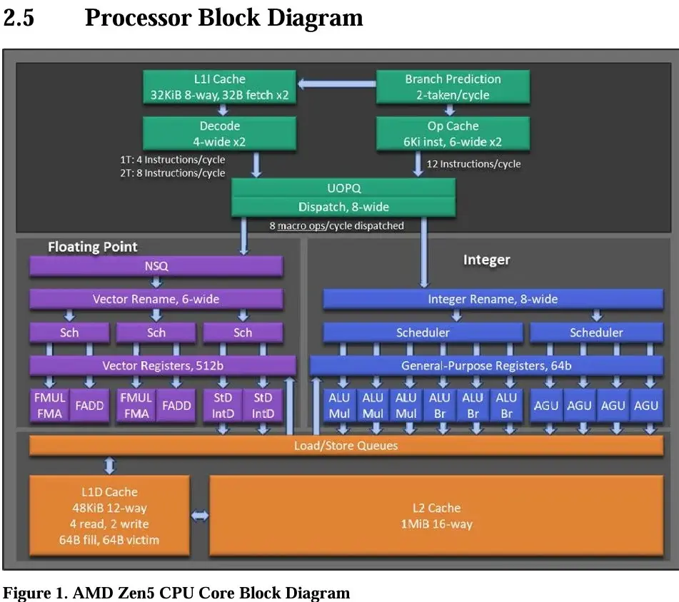 Erste Hinweise auf AMD Zen 6 sind in einem internen Entwicklerdokument aufgetaucht. Die neue Architektur setzt demnach auf eine 8-Wide Instruction Dispatch, wodurch pro Takt deutlich mehr Befehle parallel an die Ausführungseinheiten weitergereicht werden können. Das verspricht spürbare Leistungsgewinne bei stark parallelisierbaren Workloads.