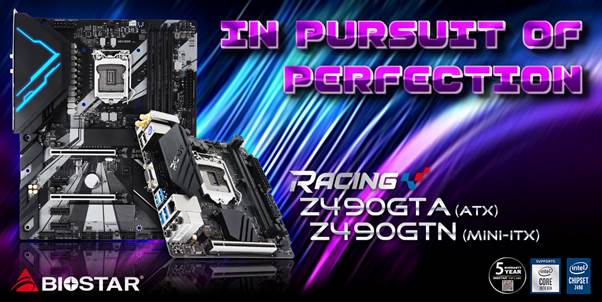 Taipei, Taiwan, 14. Mai 2020 – BIOSTAR, einer der führenden Hersteller von Motherboards und Grafikkarten, hat heute die neuen Motherboards RACING Z490GTA und RACING Z490GTN für die neuen Intel® Core™ Prozessoren der 10. Generation angekündigt.