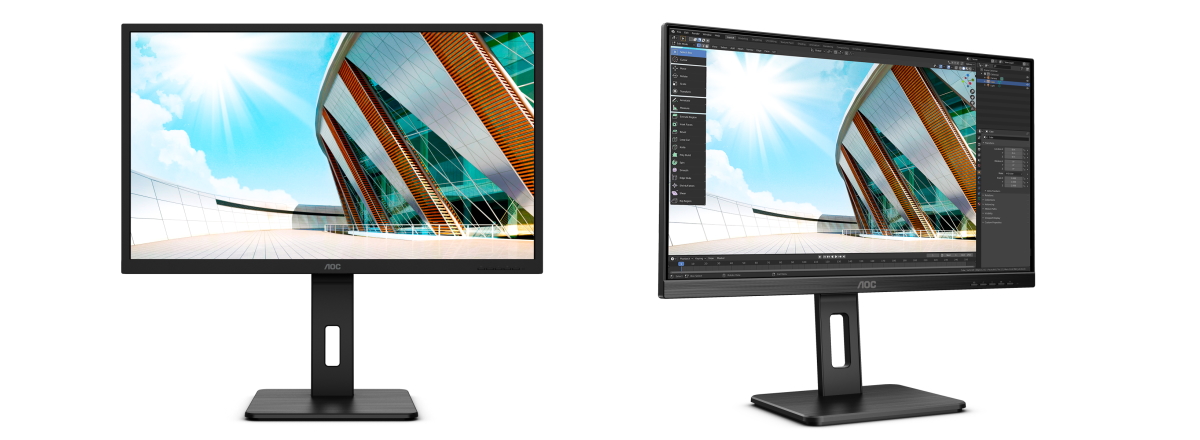 Bei den beiden anderen Neuzugängen handelt es sich um die Modelle AOC Q32P2CA und AOC Q27P2CA mit 32″ beziehungsweise 27″, IPS-Panel und einer Bildwiederholfrequenz von 75 Hz. Der Q27P2CA zeichnet sich dabei aufgrund seines kleineren 27-Zoll-Panels durch eine besondere Bildschärfe aus. Die optimale Kombination aus Größe (27 Zoll) und Auflösung (QHD) ist geradezu ideal für die meisten Anwender. Besonders Grafikdesigner und Content-Ersteller werden aufgrund der farbenfrohen, satten Bilder und der außergewöhnlich breiten Farbraumabdeckung (126,5 % sRGB, 108,4 % AdobeRGB, 100,8 % DCI-P3) begeistert sein.