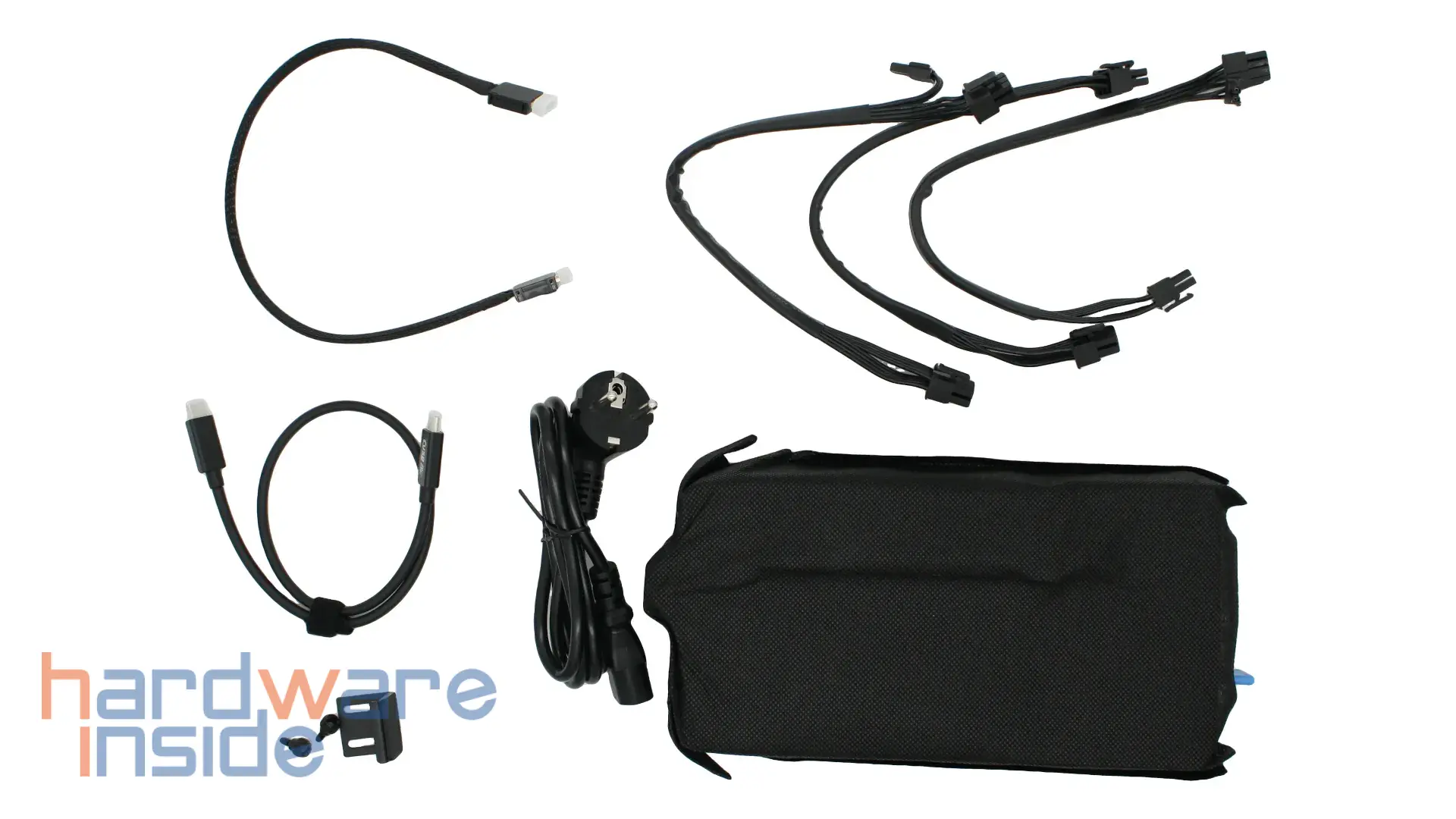 Zum Lieferumfang des AOOSTAR AG02 gehört alles, was für den Einsatz notwendig ist, von der Grafikkarte mal abgesehen. Neben dem Dock, in dem das Netzteil bereits integriert ist, finden wir im Lieferumfang Kabel für den Anschluss von OCuLink und USB4 Geräten, sowie drei PCIe Power Kabel für die Stromversorgung von Grafikkarten.