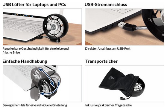 Der neue, mobile USB-Ventilator Summair Light sorgt für einfache und schnelle Erfrischung im Büro, Zuhause oder unterwegs. Dank des kompakten und besonders leichten Designs lässt sich der Summair Light problemlos überall mitnehmen und ist durch die dazugehörige Mikrofasertasche gut geschützt. Die Geschwindigkeit des 92 mm Lüfters lässt sich stufenlos zwischen 900-2100 RPM einstellen.