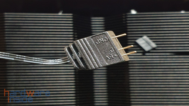 Angeschlossen wird der Lüfter über einen 4-poligen PWM-Stecker. Das 20 cm lange Anschlusskabel ist lang genug, um bequem im Gehäuse verlegt werden zu können. Für den Anschluss der Beleuchtung nutzt ARCTIC einen 5 V 3-Pin Stecker, der über eine Weiche auch mit anderen ARGB-Komponenten verbunden werden kann, um die Beleuchtung zu synchronisieren.