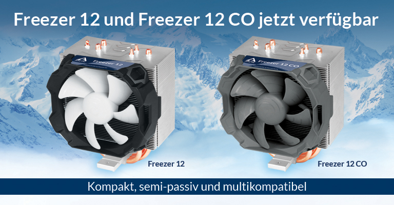 Mit dem Freezer 12 und dem Freezer 12 CO bietet ARCTIC nun zwei kompakte CPU-Kühler an, die mehrfach kompatibel und auch für den AMD Ryzen AM4 Sockel geeignet sind. Die Nachfolger der Freezer 11 Serie überzeugen auf ganzer Linie: sie bieten einen äußerst niedrigen Geräuschpegel, eine starke Kühlkapazität, vielseitige Installationsmöglichkeiten und sind sicher zu transportieren. Als semi-passive Kühler arbeiten der Freezer 12 und Freezer 12 CO zudem äußerst effizient, da der Lüfter erst ab 40 % PWM einsetzt.