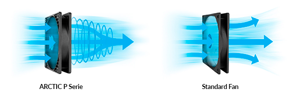 Mit den ARCTIC P-Lüftern lässt sich eine deutliche Steigerung der Kühlleistung auf Radiatoren und Heatsinks erzielen. Bei der Entwicklung des neuen Lüfterdesigns wurde besonderer Wert auf einen fokussierten Luftstrom gelegt, wodurch die Lüfter auch bei erhöhtem Luftwiderstand eine äußerst effiziente Kühlung garantieren.