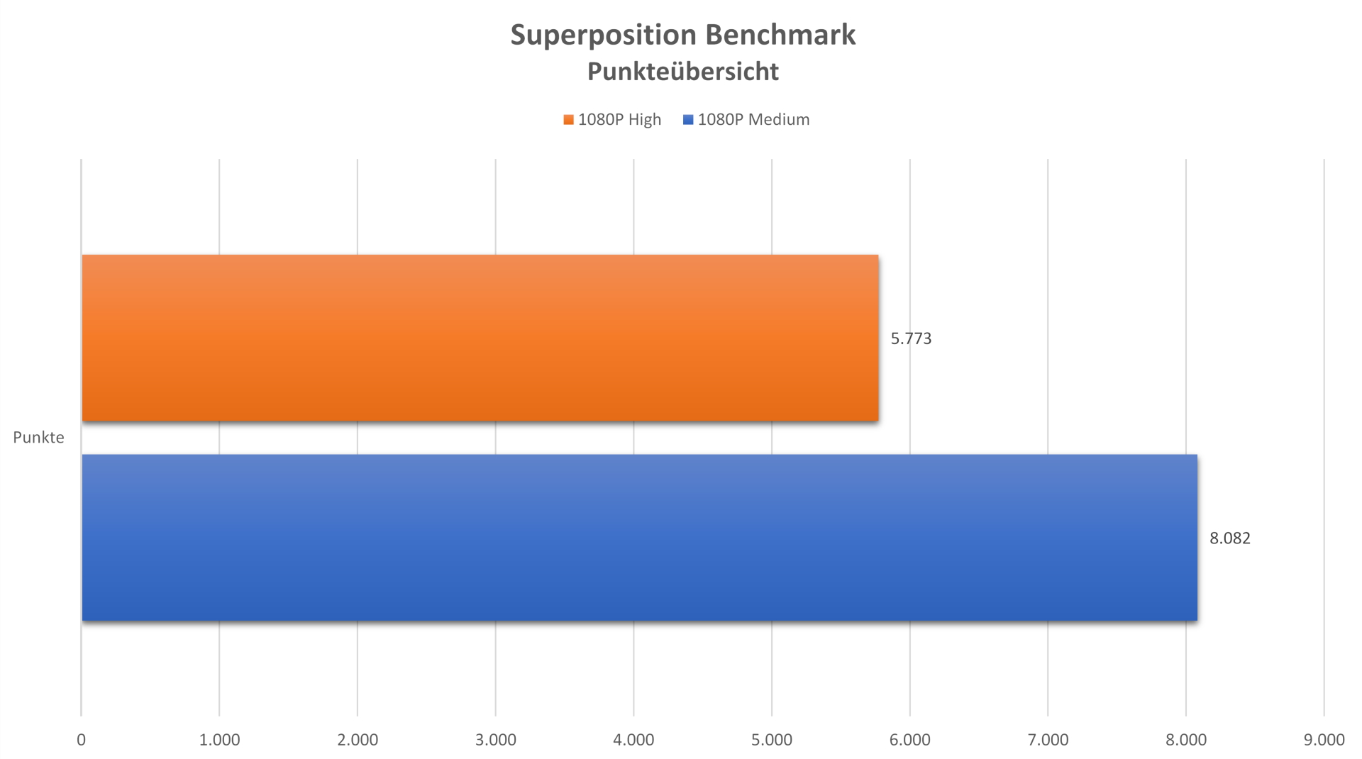Unser erster synthetischer Benchmark ist Superposition. Hier testen wir in den Einstellungen 1080P Medium und 1080p High. Höher können wir in den Einstellungen zwar gehen, jedoch werden wir von dem 3 GB Speicher der Grafikkarte eingeschränkt.