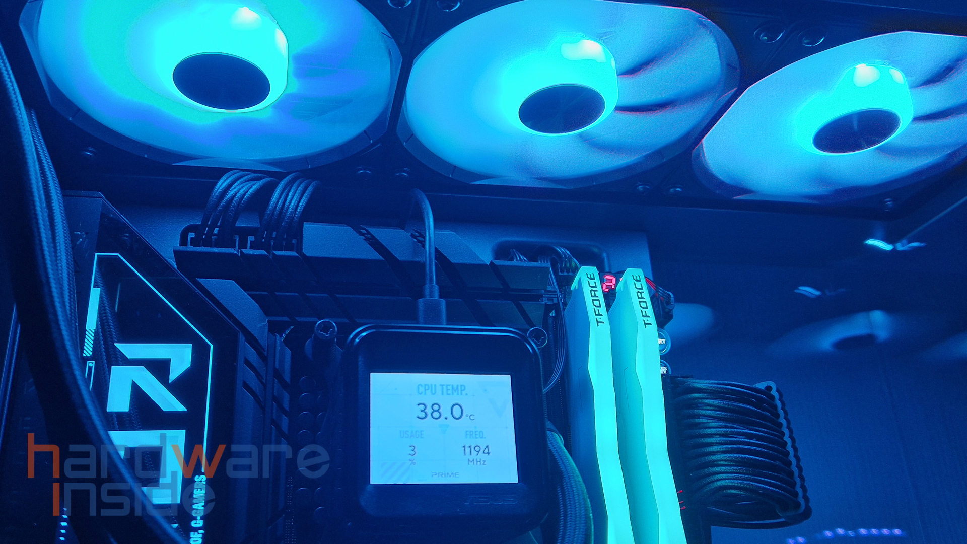 ASUS sieht vor, die Schläuche der Prime LC 360 ARGB LCD zu ummanteln und bei einer Länge von 400 mm sollte der Einbau der All-In-One Wasserkühlung selbst in kleinere Gehäuse kein Problem darstellen.