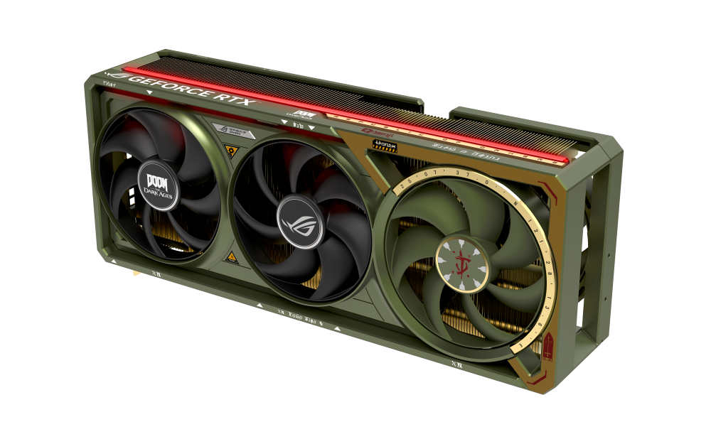 Im Mittelpunkt der Zusammenarbeit steht eine limitierte Auflage der ROG Astral GeForce RTX™ 5080-Grafikkarte, die vom DOOM Slayer-Charakter inspiriert ist. Sie wird exklusiv im Bethesda Gear Store verkauft und enthält ein exklusives T-Shirt, eine Mouse Mat, eine gelbe Schlüsselkarte, den ROG-exklusiven DOOM Slayer Legionary-Skin für das Spiel und optional die Premium Edition des Spiels.