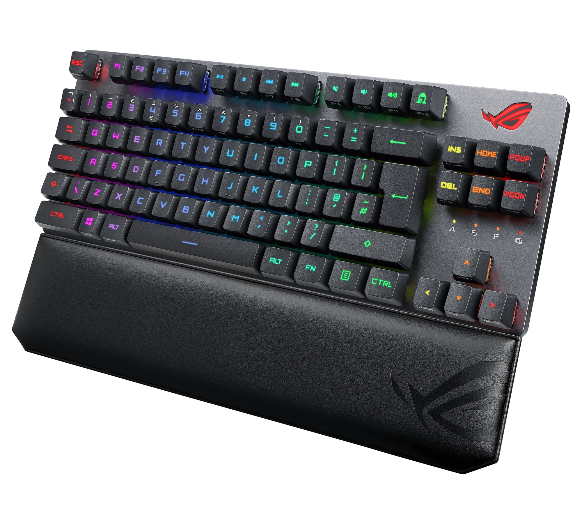 Die ROG Falchion Ace HFX integriert meisterhaft Pfeil- und Navigationstasten in ein 65-%-Tastaturlayout. Mit einer Länge von nur 315 mm hat sie fast die gleiche Größe wie eine 60-%-Tastatur, sodass Spielende alle Funktionen einer normalen Tastatur nutzen können und gleichzeitig Platz auf dem Schreibtisch sparen.